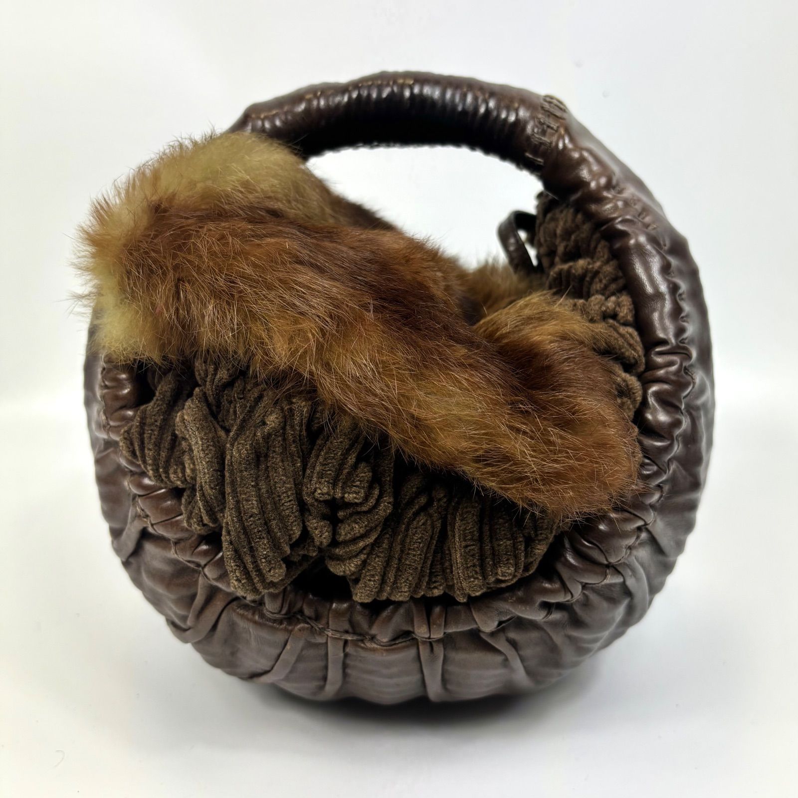 eb.a.gos エバゴス カゴバッグ チョコボール ハンドバッグ レザー ファー 鏡 ミラー付き ブラウン 茶色 かごバッグ 丸型 保存袋