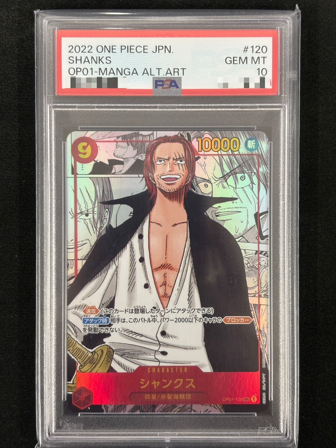 ワンピースカード シャンクス パラレル 漫画背景 漫画絵 左下ロゴ無し SEC SP OP 01 120 PSA 10 コミパラ