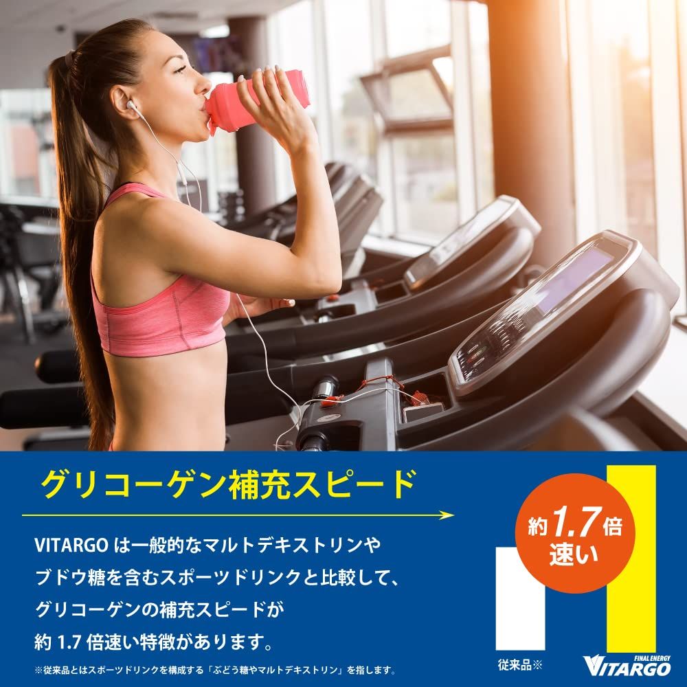 アスリートからの様々なリクエストに応えるために開発されたVITARGO(炭水化物)を配合。従来のスポーツドリンクに比べ、VITARGOは胃の通過スピードが約1.9倍、グリコーゲン補充スピードが約1.7倍速く、スムーズにエネルギー補給が可能です。アスリートの多様なエネルギーニーズに応えます。