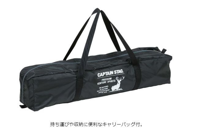 付属品:ペグ8本、ガイドロープ(長)4本・(短)4本、ハンマー1本、ポール用収納袋1枚、ペグ用収納袋1枚、キャリーバッグ1枚