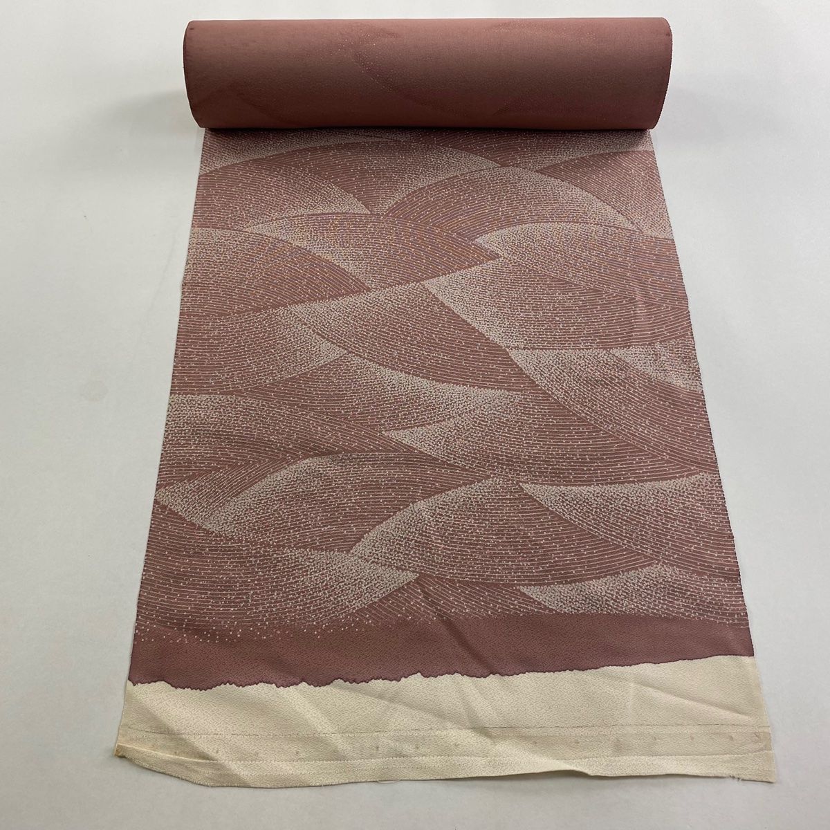 反物 秀品 小紋 幾何学 ピンクベージュ 正絹