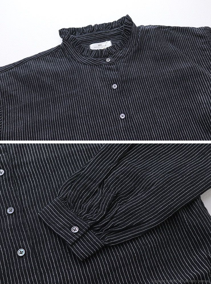 ソイル SOIL ウールリネンストライプフリル シャツ ブラウス 長袖 羽織 インド製 レディース 2025秋冬
